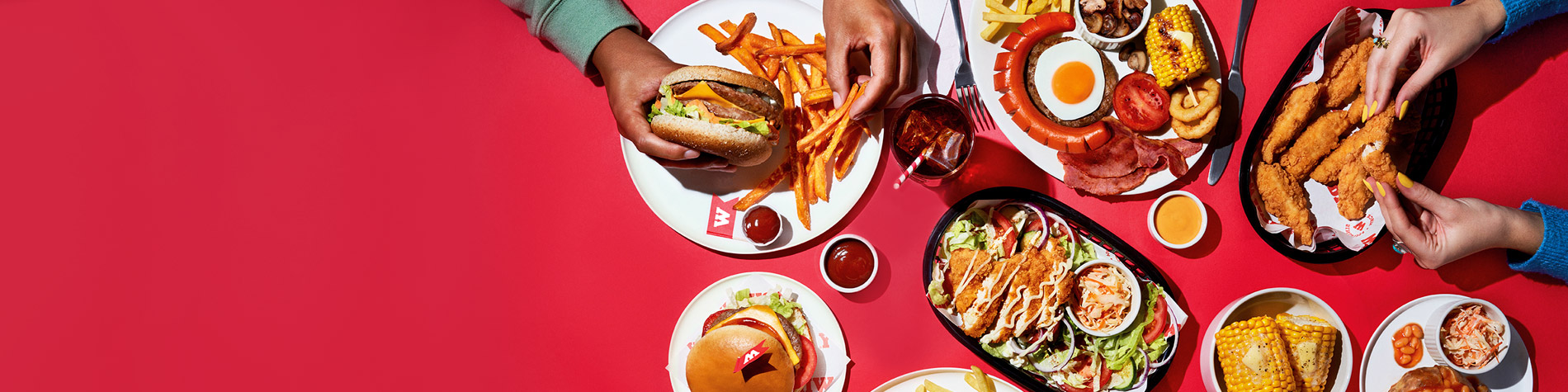 Every Wednesday dine-in customers can enjoy one of four selected Wimpy favourites served with chips and a sparkling soft drink for just £8.50! Choose from Wimpy Hamburger, Wimpy Cheeseburger, Spicy Bean & Slaw or Bendy & Cheese. Terms & conditions apply. See in-store for details.